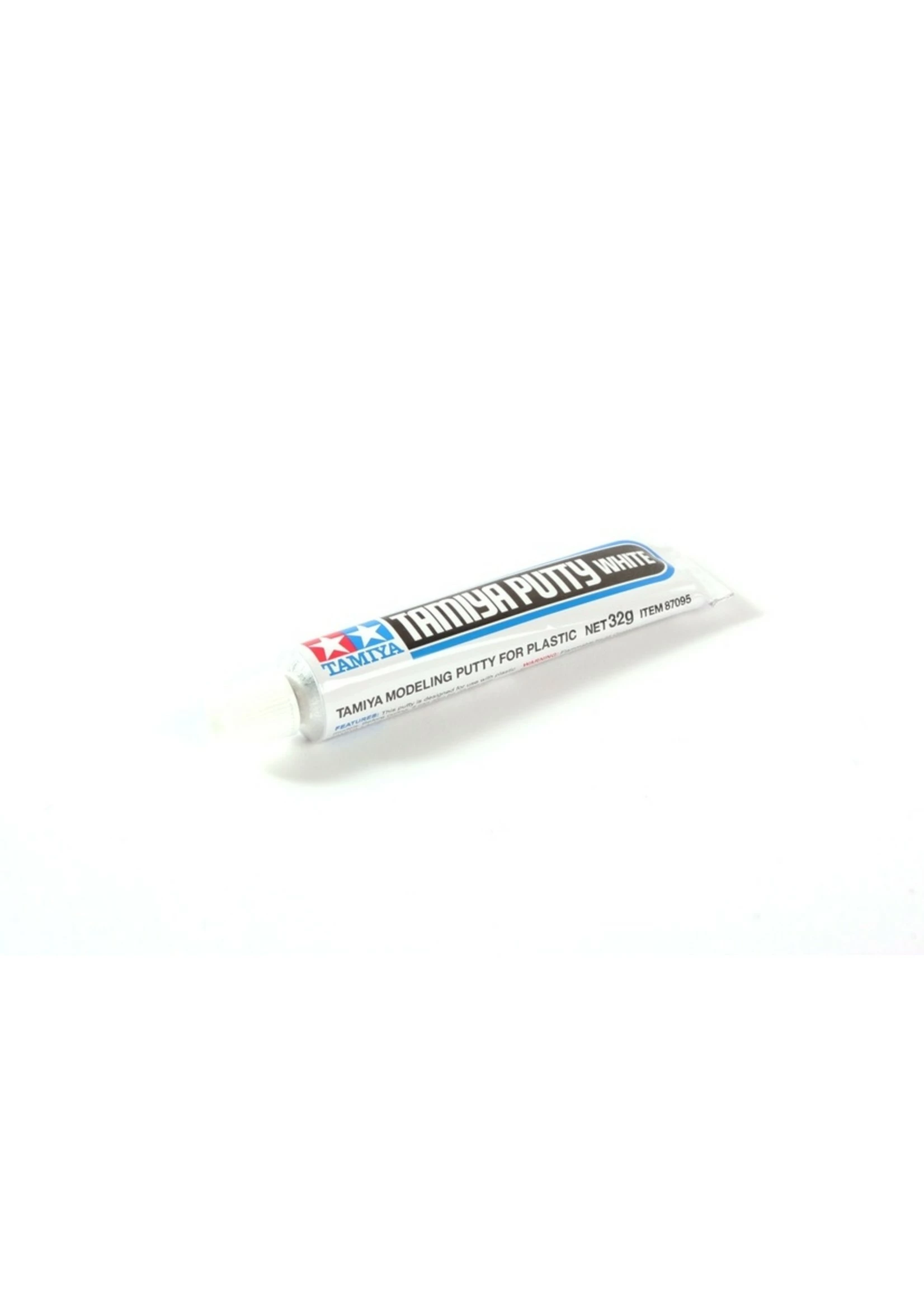 The currently available Tamiya Putty (Basic Type) has long been praised by modelers for its high quality and ease of use. However, its gray color sometimes made painting over it with a lighter color difficult. Tamiya now provides modelers with a white-colored putty to solve this problem. Useful for filling holes and seam lines, this versatile putty can be used on plastic, wood, or metal, and can also be diluted with lacquer thinner for a wide range of applications. Each aluminum tube contains 32 grams of putty.