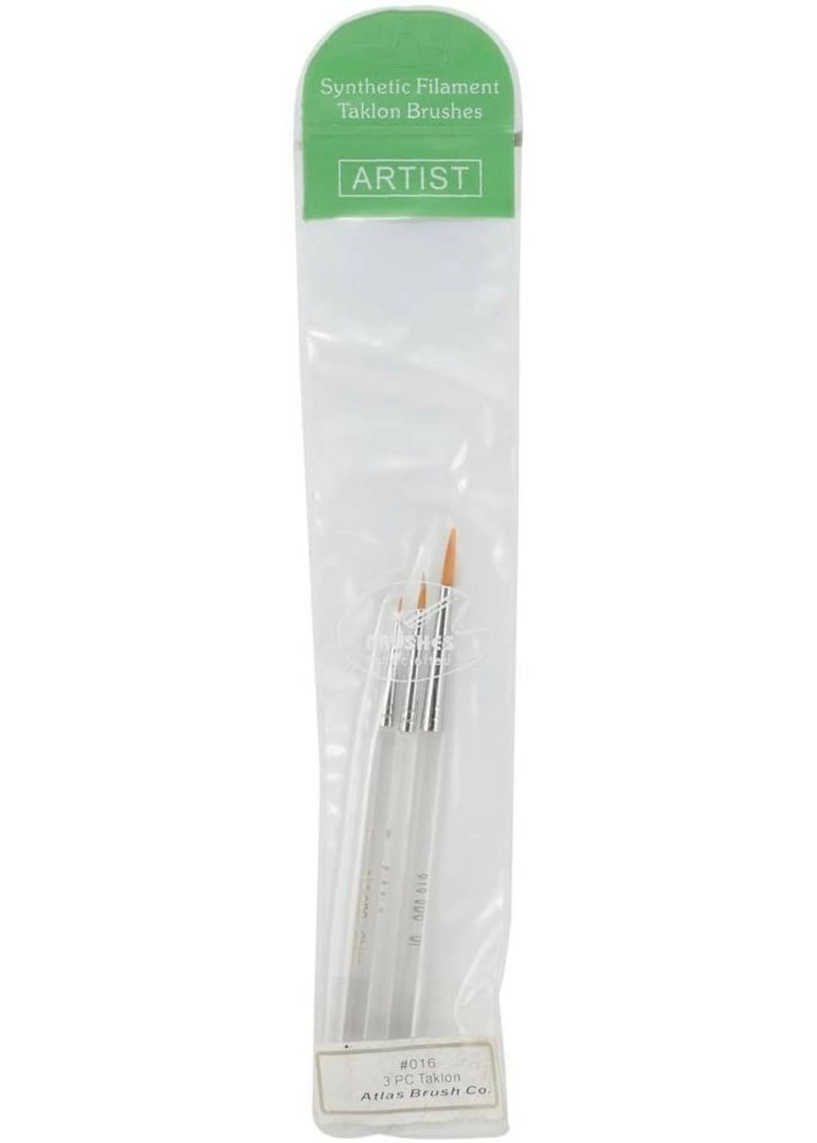 This is an Atlas Taklon Detail Acrylic Brush Set. This set includes three brushes used for fine paint detailing with acrylic paints.
