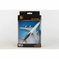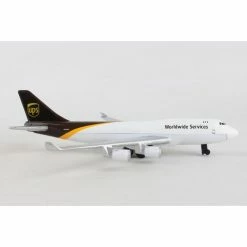 This authentic die cast Boeing 747 plane contains four engines and sports the UPS logo on its tail. It is made of die cast metal.
