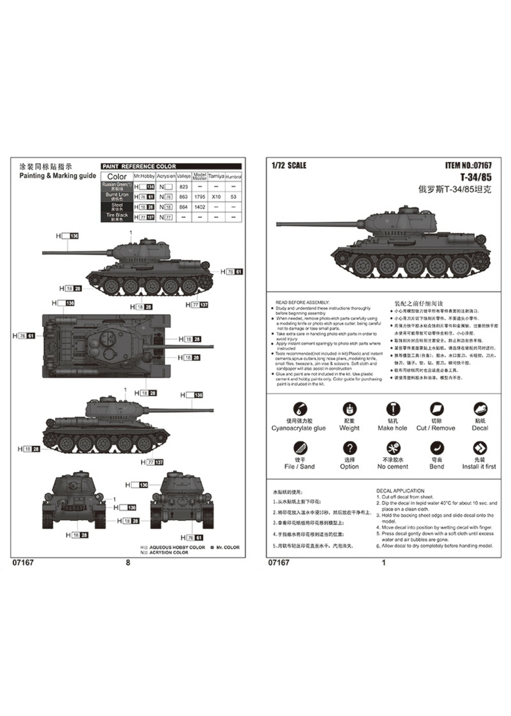 Trumpeter 7167 – 1/72 T-34/85 Tank Model Kit