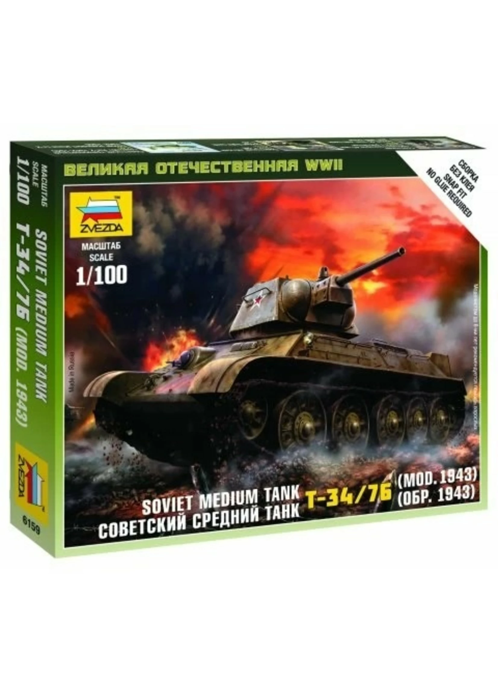 Zvezda 6159 – 1/100 Soviet T34/76 Mod 1942 Medium Tank